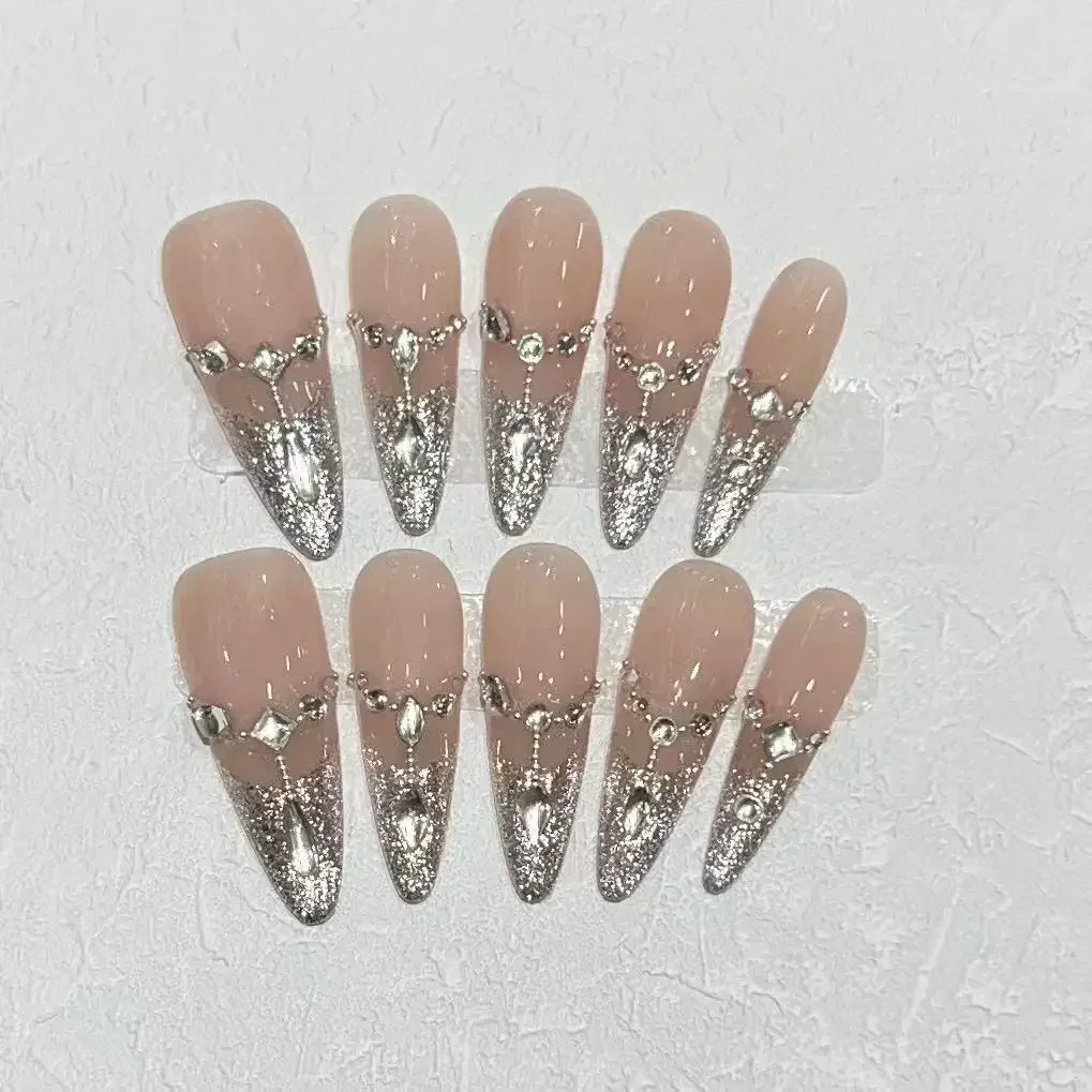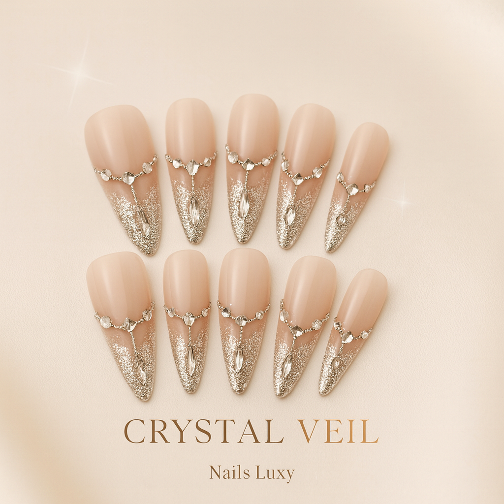 #LuxuryNails #PressOnNails #RhinestoneNails #ReusableNails #AlmondNails #CrystalVeil #ElegantNails #HandmadeNails #ChicStyle