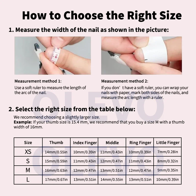 Select the correct size for each nail to ensure comfortable, natural-looking fit.
