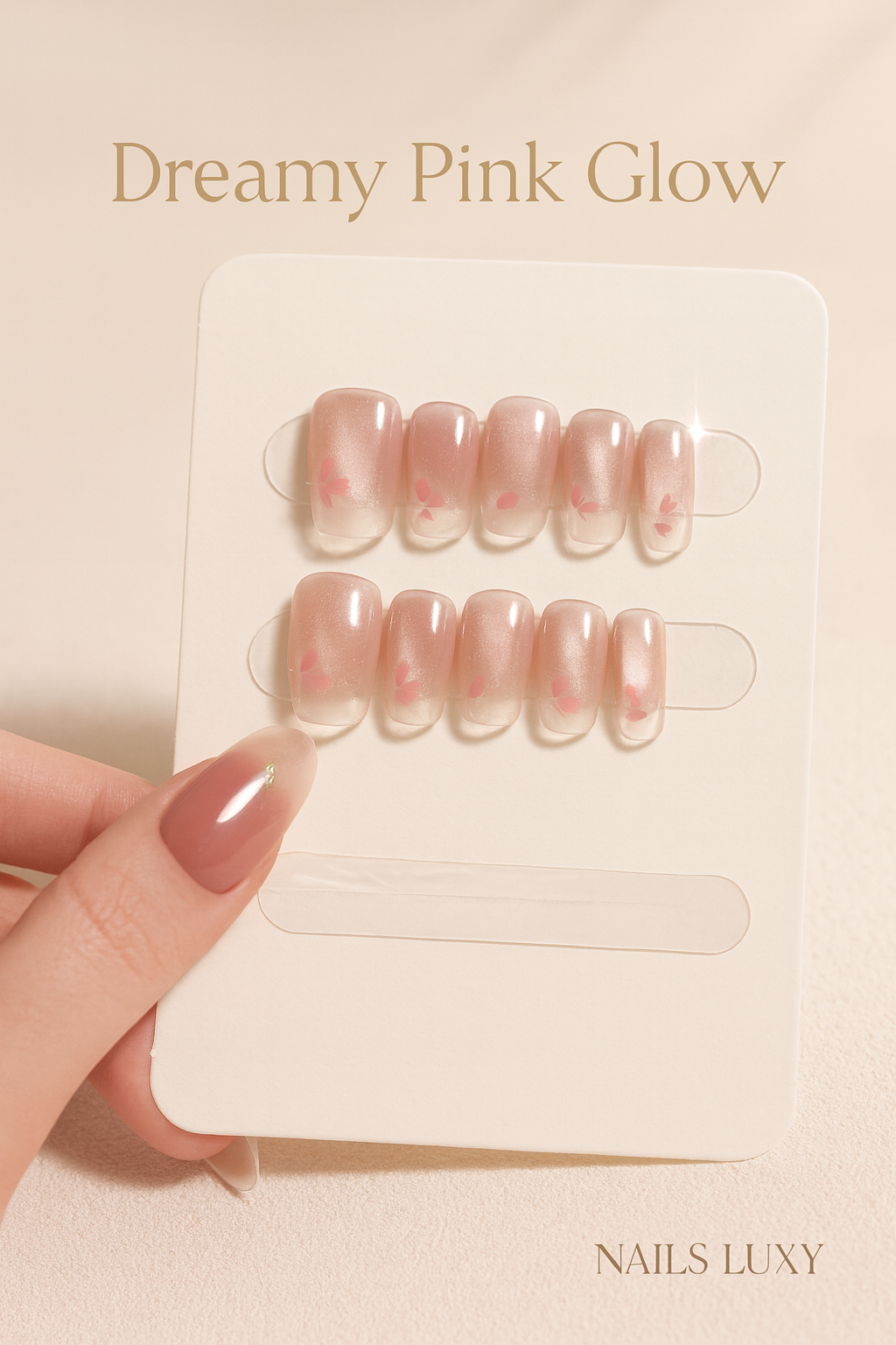 🌸 Dreamy Pink Glow – Uñas Postizas Handmade Cat-Eye 💖